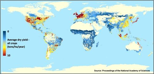 上の地図は、世界の農産物の収量(※)を表したものです。 収量:1年間に1ヘクタール当たり収穫できる農産物のトン数 出典:national academy of sciences of ukraine Picture of the week: Global Crop Yields トップ3は、米国、欧州、そして、インドネシ…