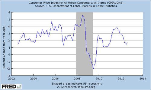 米労働省が発表した2012年8月の米消費者物価指数(CPI)統計によると、季節調整前の総合指数の前年同月比は、1.70%増となりました。(前月は、1.40%増) 現在の景気循環の底である2009年6月からの前年同月比の平均は、1.90%とな…