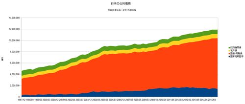 日本銀行が発表した資金循環表によると、2015年3Q末の日本の公的債務(注)の残高は、前期比0.2%増の、1191兆2368億円となりました。 前年同期比では、2.4%の増加です。 注) 日本の公的債務=(国庫短期証券+国債・財融債+政府機関債…