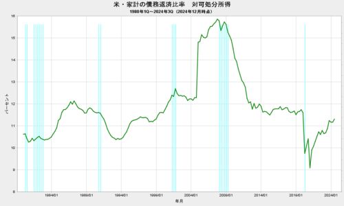 FRB 2024年3Q 家計の債務返済比率(Debt Service Ratio)・・・対可処分所得 11.29% 前期比、0.14ポイント増 fred.stlouisfed.org