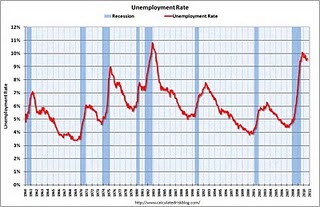 今回の景気後退では、雇用者数の減少開始から、2010年9月時点で、33ヶ月目に入っており、約5.6%の雇用が失われています。