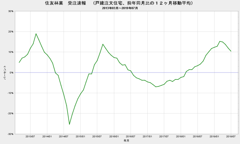 2019-08-09 2019/7 住友林業 受注速報 前年同月比 -10% ▼ 日本の住宅/不動産 #不動産 ・住友林業 ・2019年7月 ・受注速報 ・戸建注文住宅受注金額 ・前年同月比、10%減 ・住友林業受注速報